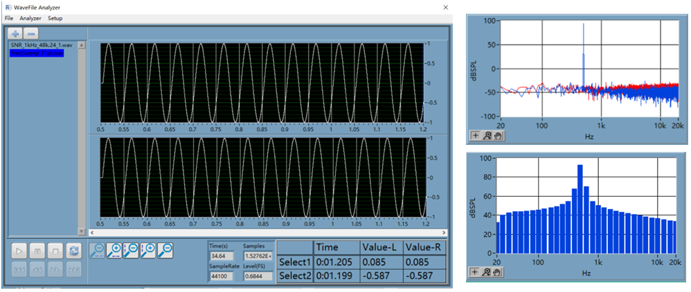 信号文件分析界面 & FFT/倍频程分析界面如下图所示: