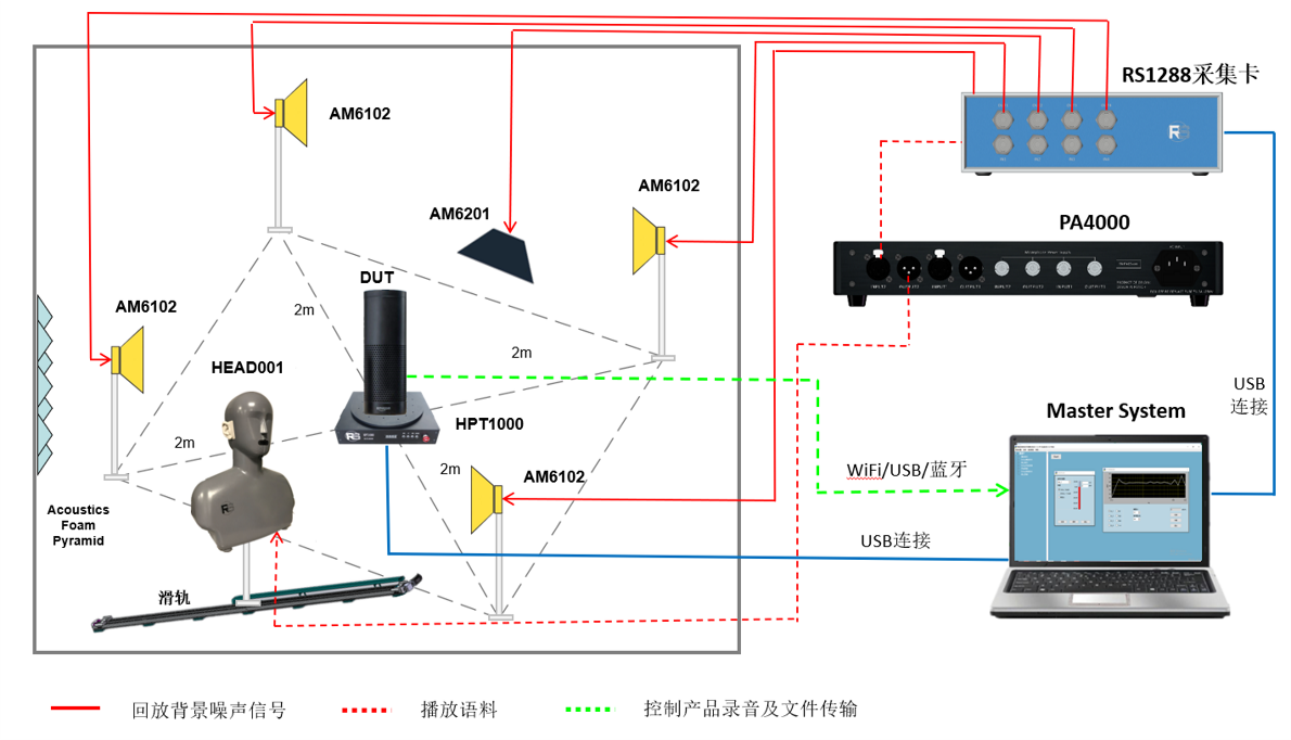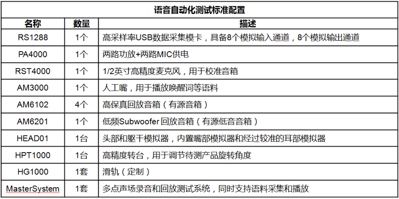 依据MasterSystem自动语音识别软件,结合瑞森高性能硬件搭建的智能语音识别系统,内含升降台、直线运动导轨、转台等运动器件,可以帮助客户完成任意距离、角度的唤醒、交互测试。同时也兼容标准项目类似PESQ(ITU-T P.862)、PQLQA(ITU-T P.862)、3QUEST(ITU-T P.835)等语音质量指标测试。