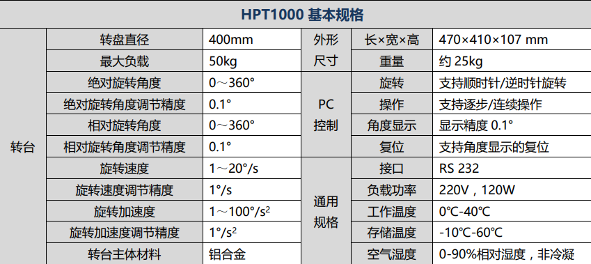 HPT1000是瑞森新谱自主研发的一款高精度旋转台,主要由一个带有步进电机的精密旋转单元和一个带PC连接的串行接口的壳体装置组成。通过使用独立的软件工具控制,HPT1000旋转台主要被用于自动化测试中与指向性相关的声学测量,能够支撑、旋转或急停高达50kg的负载,具有旋转精度高、负载能力强、耐用性好、低噪声等特点。