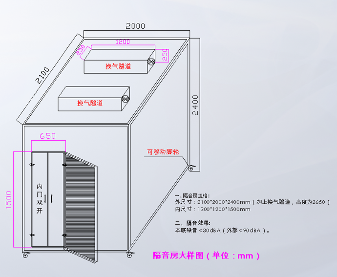 (隔音房的尺寸和本底要求,可以根据客户需求进行非标定制)