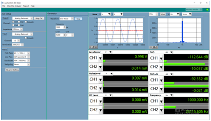 JUST1000与JUSTSystem配合,除了高速高性能高稳定性,可以进行常规的频响,失真,纯音,灵敏度,相位,信噪比,扫幅测试,阻抗测试等测试以及信号发生器,万用表,频谱分析,波形显示外,还增加了直流分量分析,信噪比直观分析,各阶谐波失真显示等功能以进一步完善音频系统功能,同时还继承了TrustSystem优秀的用户界面,能够允许用户自己设置定义在2-3秒内完成一个标准的音频测试循环,其高性能完全满足实验室测试的测试精度需求,同时其高效能也完全满足产线测试的测试时间需求。