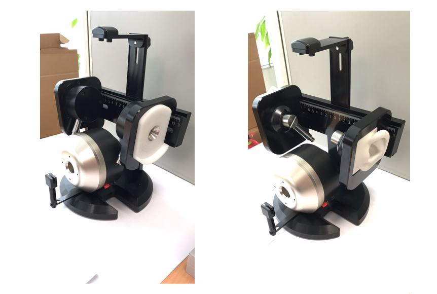 Left test jig is the first version of HD400, which is built with two AE1000 Artificial Ear and one AM3000 Artificial Mouth. And in the right, you see the second version of HD400 built with two AE2000 Artificial Ear, one Artificial Mouth and two pinna.